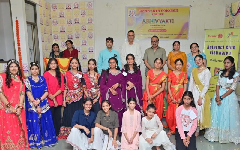 उदयपुर। ऐश्वर्या कॉलेज उदयपुर के नाट्य ऐश्वर्या विभाग द्वारा आयोजित अभिव्यक्ति सांस्कृतिक महोत्सव के तीसरे दिन विभिन्न प्रतियोगिताओं का आयोजन किया गया।कार्यक्रम में अतिथि व निर्णायक की भूमिका में संगीतप्रेमी व दंतचिकित्सक डॉ स्मिता सिंह, समाजसेवी व उद्योगपति श्रीमान सुशील कुमार पानेरी और  उद्योगपति दिलीप सुराणा रहे।
