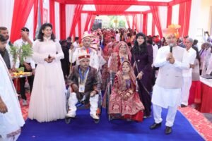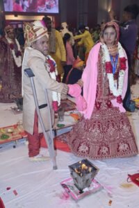 उल्लेखनीय हैं कि इस सामूहिक विवाह में दोनों पैरों से दिव्यांग बांसवाड़ा के मनीलाल ने निर्धन रसीला डामोर से, उदयपुर के एक हाथ से अपाहिज़ हीरालाल ने निर्धन शांति कुमारी से, हमीराराम एक पैर से दिव्यांग ने निर्धन कुकली कुमारी और दोनों पैर से दिव्यांग सोमाराम ने संस्थान से आर्टिफिशियल लिंब प्राप्त करने वाली संगीता का हाथ थामा।