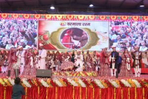के निर्देशन में 51 पण्डितों ने अलग- अलग अग्निकुण्डों पर वैदिक मंत्रोच्चार के साथ पाणिग्रहण संस्कार की विधि सम्पन्न करवाई। इस दौरान प्रत्येक वेदी पर वर-वधू के माता -पिता, कन्यादानी व साधक -साधिकाएं उपस्थित थे।