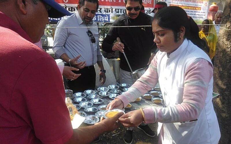 उदयपुर। महाराणा भूपाल चिकित्सालय के मुख्य गार्डन में निःशुल्क भोजन सेवा संस्थान द्वारा आयोजित साप्ताहिक निःशुल्क भोजन वितरण कार्यक्रम के दौरान संस्थान ने घोाणा की कि अब प्रतिदिन यहंा पर 70 लोज़र मदर को पोैष्टिक दलिया मिलेगा। कार्यक्रम के मुख्य अतिथि एडवोकेट निर्मल पंडित एवं वशिष्ठ अतिथि बृजमोहन विशिष्ट एवं नर्सिंग अधिकारी भावना कलाल थे।
