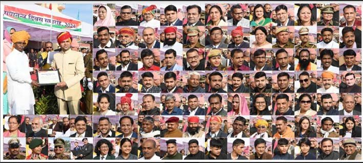 समारोह में मुख्य अतिथि द्वारा जिले में विभिन्न उल्लेखनीय कार्यों व सेवाओं के लिए 92 जनों/संस्थाओं का सम्मान किया गया। इसके तहत शहीद मेजर मुस्तफा की माता श्रीमती फातेमा, भू प्रबंध अधिकारी प्रदीप सिंह सांगावत, देवस्थान अतिरिक्त आयुक्त मुकेश चौधरी, डीआईजी स्टाम्प जितेन्द्र ओझा, आरएनटी के सहायक आचार्य डॉ. राजवीर सिंह, डीटीओ अनिल सोनी, आरएनटी से डॉ. सुधा गांधी, बछार पीएचसी के डॉ. हेमसिंह, आईएमए के डॉ. आनंद गुप्ता, आरएनटी के डॉ. भुवनेश चापावत, प्रो. रेणु मोगरा, एमपीयूएटी के विनय भाटी, एनसीसी की कैप्टन डॉं. संगीता माहेश्वरी, निर्माण विभाग के अधीशाषी अभियंता रवीन्द्र कुमार मूंदड़ा, कृषि वैज्ञानिक डॉ. दीपक कुमार जैन, राउमावि गुपड़ा प्रधानाचार्य भंवरसिंह राठौड़, आयुर्वेद कॉलेज के डॉ. शिवकांत शर्मा, योगाचार्य डॉ. जसवंत मेनारिया, परिवहन निरीक्षक चंचल माथुर, स्मार्ट सिटी के करनेश माथुर, भीण्डर ब्लॉक सीएमओ डॉ. संकेत जैन, एवीवीएनएल के हरिप्रसाद शर्मा व डॉ. कादंबरी जैन, वन विभाग के दिनेश चन्द्र मीणा, सुरेन्द्र सिंह व राजेश्वरी राठौड़, भू अभिलेख निरीक्षक बाबूलाल तावड़, पर्यटन अधिकारी जितेन्द्र कुमार माली, एमबी अस्पताल की डॉ. शिप्रा शर्मा व जगदीश अहीर, एडीएम कार्यालय के हिमांशु चौबीसा, अतिरिक्त संभागीय आयुक्त कार्यालय के यशवंत नाथ व लालूराम गमेती, सहायक लेखाधिकारी पुरूषोत्तम दाधीच, एसपी कार्यालय के अनिल कुमार, सूचना सहायक उत्पल पण्ड्या, पीटीआई युगल किशोर शर्मा, शिक्षा विभाग से गजेन्द्र लोहार, भारत भूषण जोशी व चन्द्रप्रकाश जैन, टीबी अस्पताल के लक्ष्मीनारायण चौहान, जिला सत्र न्यायालय के रवीन्द्र श्रीमाली व माणकलाल कुमावत, देवस्थान विभाग के सोनू शर्मा, समग्र शिक्षा के विजय शर्मा, खान एवं भूविज्ञान विभाग के यथार्थ मीणा, टीएडी के कुलवेन्द्र सिंह कुशवाह, जीपीएफ के सौरभ मीणा, पीएचईडी के राजेश पुरोहित, प्रोटोकॉल अनुभाग के अंबालाल चौहान को सम्मानित किया गया।