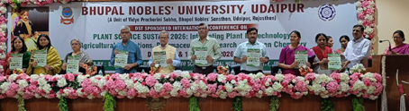 मानवता के कल्याण के लिए युवाओं को समावेशी, सहभागी और साक्ष्य-आधारित शोध करने चाहिए। उन्हें अपनी ऊर्जा का उपयोग स्वास्थ्य, मानसिक कल्याण, शिक्षा और सतत् विकास लक्ष्यों (SDGs) जैसे विषयों पर करना चाहिए न कि केवल नौकरी खोजने पर। यह विचार प्रो बी एल चौधरी, पूर्व कुलपति, एमएलएसयू उदयपुर ने दो दिवसीय अंतरराष्ट्रीय कांफ्रेंस में व्यक्त किये। भूपाल नोबल्स विश्वविद्यालय के विज्ञान संकाय के अंतर्गत संचालित वनस्पति विभाग द्वारा आयोजित यह कॉन्फ्रेंस ’प्लांट सस्टेन- 2026 इंटीग्रेटिंग प्लांट बायोटेक्नोलॉजी, एग्रीकल्चरल इन्नोवेशंस, फार्मास्यूटिकल रिसर्च एंड ग्रीन केमेस्ट्री’ विषय पर आधारित है। अधिष्ठाता प्रो रेणू राठौड़ एवं सह अधिष्ठाता प्रो रितु तोमर ने सभी पधारे हुए अतिथियों का स्वागत किया। वनस्पति विज्ञान की विभागाध्यक्ष एवं आयोजन सचिव डॉ सुनीता जैन ने दो दिवसीय कांफ्रेंस की रूपरेखा प्रस्तुत करते हुए विभिन्न तकनीकी सत्रों की जानकारी दी तथा हाइब्रिड मोड पर आयोजित इस कांफ्रेंस में अब तक 110 रजिस्ट्रेशन हो चुकें हैं। इस अवसर पर सोविनियर का विमोचन भी किया गया। सम्मानित अतिथि के रूप में प्रो कनिका शर्मा, पूर्व डीन, यूनिवर्सिटी कॉलेज ऑफ़ साइंस एमएलएसयू ने अपने वक्तव्य में कहा कि जैविक संसाधन जो मानवता को वास्तविक या संभावित मूल्य प्रदान करते हैं। ये खाद्य, औषधि और औद्योगिक अनुप्रयोगों के लिए महत्वपूर्ण हैं, ये संसाधन जैव अर्थव्यवस्था, जैव विविधता और सतत विकास के लिए आवश्यक हैं। इस अवसर पर वि.प्र.सभा के मंत्री डॉ महेंद्र सिंह राठौड़ ने ज्ञान का सार्थक प्रयोग किया जाना आवश्यक बताया जो नवाचार, शोध और मानवता के कल्याण के लिए आवश्यक हो। प्रो जीएस शेखावत, जय नारायण व्यास विश्वविद्यालय जोधपुर तथा भू.नो. विश्वविद्यालय के प्रेसिडेन्ट प्रो चेतन सिंह चौहान ने भी विषय से संबंधित अपने विचार व्यक्त किये। वित्तमंत्री, शक्ति सिंह कारोही ने अतिथियों को प्रतीक चिन्ह प्रदान किये। चैयरपर्सन मानद प्रो कर्नल शिवसिंह सारंगदेवोत तथा प्रबंध निदेशक मोहब्बत सिंह राठौड़, डॉ निरंजन नारायण सिंह राठौड़, कुलसचिव, भूपाल नोबल्स वि.वि. ने कॉन्फ्रेंस की सफलता की कामना करते हुए अपने प्रेषित संदेश में रिसर्च की गुणवत्ता बनाए रखने पर बल देते हुए कहा कि अच्छे रिसर्च से ज्ञान का विस्तार होने के साथ ही जटिल समस्याओं के व्यावहारिक समाधान मिलते हैं और नई तकनीक का विकास संभव होता है। समाज की प्रगति, सटीक निर्णय लेने, पूर्वाग्रह को दूर करने और बौद्धिक क्षमता को बड़ा बढ़ाने में उन्नत रिसर्च महत्वपूर्ण भूमिका निभाता है। इस अवसर पर प्रो मोहन सिंह राठौड़, प्रो प्रेम सिंह रावलोत, डॉ गिरधर पाल सिंह सह अधिष्ठाता छात्