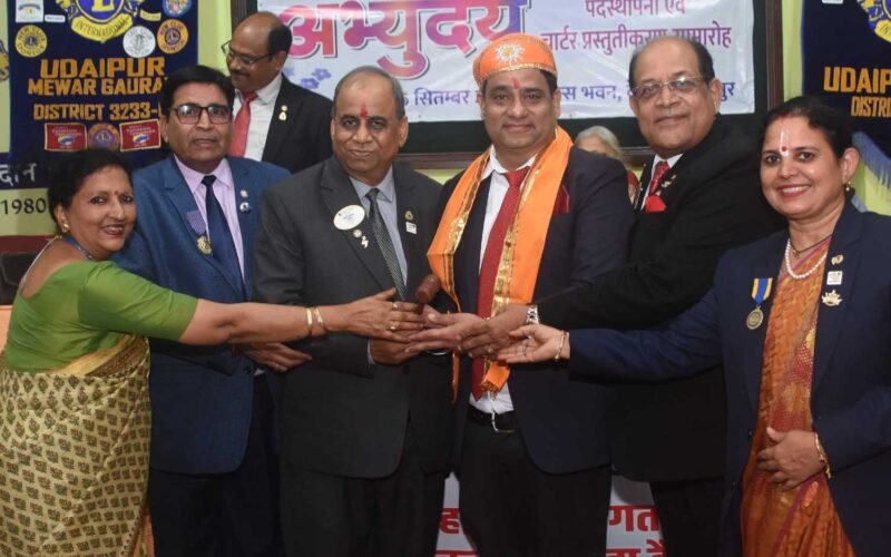 उदयपुर। चार्टर अध्यक्ष लायन मुकेश माधवानी ने बताया की लायंस क्लब उदयपुर मेवाड़ गौरव एवं उदयपुर एलिट प्रांत 3233 ई 2 द्वारा नव प्रायोजित और लायन्स क्लब इंटरनेशनल की परंपरा को आगे बढ़ाते हुए लायन्स क्लब उदयपुर अशोका का पदस्थापना एवं चार्टर प्रस्तुतीकरण समारोह ‘अभ्युदय’ शनिवार, 6 सितंबर 2025 को संपन्न हुआ।