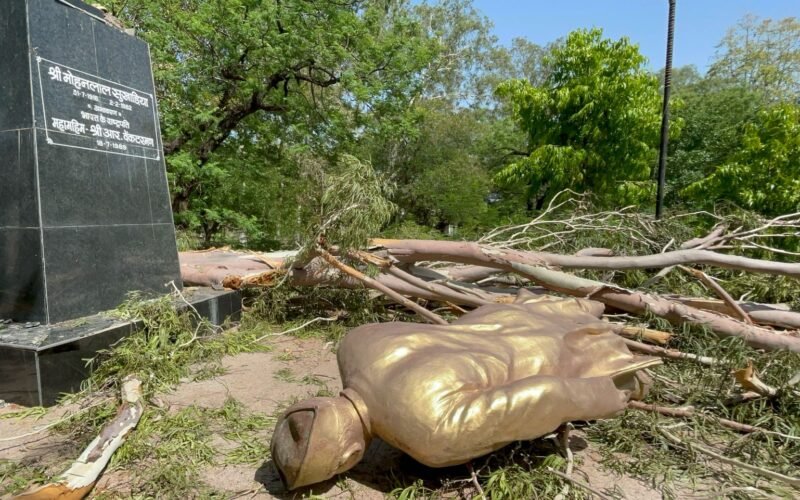 पेड टूटकर गिरने से सुखाड़िया की मूर्ति टूटी, ठीक ना हो तो नई बनवाने के निर्देश
