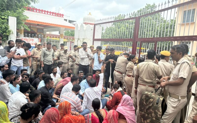 उदयपुर, 28 अगस्त : शहर के अंबामाता थाना क्षेत्र में एक निजी स्कूल की 13 वर्षीय छात्रा से दुष्कर्म के मामले में आरोपी जिम ट्रेनर की तीन दिन बाद भी गिरफ्तारी न होने से लोगों में भारी आक्रोश है। इस घटना के विरोध में शनिवार को यूथ कांग्रेस और कई हिंदू संगठनों के कार्यकर्ताओं ने स्कूल के बाहर जोरदार प्रदर्शन किया।