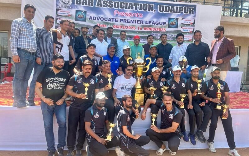 उदयपुर। बार एसोसिएशन उदयपुर के 4 दिवसीय एडवोकेट प्रीमियर लीग 2025 के तहत 6 मार्च को ओपनिंग सेरिमनी ट्रॉफी आवरण का कार्यक्रम किया गया उसके बाद 7 से 9 मार्च त मुकाबले खेले गए। बार एसोसिएशन उदयपुर के महासचिव महावीर प्रसाद शर्मा ने बताया कि 9 मार्च को फाइनल मुकाबला खेला गया उक्त फाइनल मुकाबले में सेठ जी 11 वर्सेस नारायण 11 के बीच खेला गया जिसमें सेठ जी 11 विजय रही। फाइनल मुकाबले में चेतन चौधरी कप्तान द्वारा 39 रन नाबाद बनाएं और 4 विकेट लेते हुए प्लेयर ऑफ द मैच रहे । एपीएल 2025 के बेस्ट बॉलर घनश्याम सिंह देवड़ा, बेस्ट बेस्टमैन चेतन चौधरी, बेस्ट फील्डर देवेंद्र सिंह झाला, बेस्ट प्लेयर ऑफ़ द टूर्नामेंट चेतन चौधरी रहे।