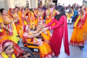 संस्थान अध्यक्ष प्रशांत अग्रवाल ने बताया कि प्रातःकालीन सत्र में गणपति वंदना के बाद पारंपरिक सुमधुर संगीत पर हल्दी और मेहंदी की रस्में सम्पन्न हुई। इस दौरान पंडाल में बैठे जोड़ों के परिजन सहित दानदाता जमकर ठुमके। इसके उपरांत समारोह के विशेष अतिथि पूर्व विधायक ज्ञानदेव आहूजा, अमेरिका के सोहन चड्डा, केन्या मुम्बासा के कुंवरभाई, मुंबई के महेश अग्रवाल व गोपाल खेतान, उड़ीसा के आनंद परतानिया सहित सैकड़ो दानवीर भामाशाहों और कन्यादानियों का सम्मान किया गया। उन्होंने कहा सभी 51 जोड़ों का पाणिग्रहण संस्कार रविवार प्रातः 11:00 बजे संस्थान के बड़ी ग्राम स्थित परिसर में विभिन्न परंपरागत रस्मों के साथ आरंभ होगा। सभी जोड़ों को विदाई के साथ गृहस्थी का सामान उपहार में भेंट किया जायेगा।