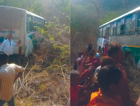 रणकपुर रोड पर स्टेयरिंग फेल होने से 30फीट गहरी खाई में गिरी बस,करीब दो दर्जन सवारियां घायल