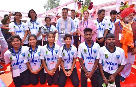 उदयपुर, 16 मार्च। डूंगरपुर जिले के बेणेश्वर धाम प्रवास के दौरान मुख्यमंत्र श्री भजनलाल शर्मा ने लैक्रोज खेल से जुड़े खिलाड़ियों से आत्मीय मुलाकात कर उनका उत्साहवर्धन किया। इस अवसर पर मुख्यमंत्री ने खिलाड़ियों से बातचीत करते हुए उनके प्रशिक्षण, उपलब्धियों और भविष्य की योजनाओं के बारे में जानकारी ली तथा उन्हें खेल के क्षेत्र में आगे बढ़ने के लिए शुभकामनाएं दीं। संभागीय आयुक्त प्रज्ञा केवलरमानी ने मुख्यमंत्री को राजस्थान की लैक्रोज टीम की उपलब्धियों से अवगत कराया। मुख्यमंत्री श्री शर्मा ने कहा कि खेल युवाओं के व्यक्तित्व विकास के साथ-साथ अनुशासन और टीम भावना को भी मजबूत बनाते हैं। उन्होंने खिलाड़ियों को निरंतर मेहनत और समर्पण के साथ आगे बढ़ने के लिए प्रेरित किया तथा भरोसा दिलाया कि राज्य सरकार खिलाड़ियों को बेहतर अवसर और सुविधाएं उपलब्ध कराने के लिए प्रतिबद्ध है। इस दौरान लैक्रोज प्रशिक्षक नीरज बत्रा सहित खिलाड़ी उपस्थित रहे।