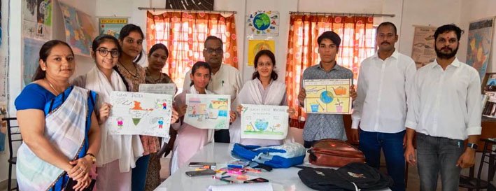 फतहनगर। नगर के महावीर अम्बेश गुरू महाविद्यालय में स्वच्छ भारत मिशन 2.0 के अन्तर्गत ‘‘स्वच्छता ही सेवा‘‘ कार्यक्रम की गतिविधि के क्रम में स्वच्छता पखवाड़ा के अन्तर्गत महाविद्यालय प्राचार्य डा.ॅ ललित कुमावत के निर्देशन में स्वच्छ भारत विषय पर निबन्ध, रंगोली एवं चित्रकला प्रतियोगिता का आयोजन किया गया। निबन्ध प्रतियोगिता में मनीष पूर्बिया (प्रथम), कोयल सेठिया (द्वितीय), ओमप्रकाश मेघवाल (तृतीय) रहे। रंगोली प्रतियोगिता में राजु कुंवर (प्रथम) कौशल्या सरगड़ा एवं खुशी मेनारिया (द्वितीय), सेजल मेनारिया एवं दिव्या मेनारिया (तृतीय) रहे। चित्रकला प्रतियोगिता में कोमल मेनारिया (प्रथम), प्रतिभा जोशी (द्वितीय),कोयल सेठिया एवं मधु जोशी (तृतीय) रहे। कार्यक्रम के दौरान डाॅ. शारदा जोशी, देवेन्द्र सिंह राठौड़, रेखा मेहता, अमनाराम जयपाल, महेश चन्द्र जाट, राकेश व्यास उपस्थित रहे। इधर स्वच्छता पखवाड़े के तहत विद्यालयों में भी प्रतियोगिता आयोजित की गयी। महाभियान के तहत नगरपालिका फतेहनगर सनवाड़ द्वारा राजकीय उच्च माध्यमिक विद्यालय फतेहनगर,सनवाड, महात्मा गांधी बालिका उच्च माध्यमिक विद्यालय फतेहनगर,सनवाड़ में मंगलवार को स्वच्छता एवं पर्यावरण पर आधारित रंगोली, चित्रकला एवं निबंध प्रतियोगिता आयोजित की गई जिसमे कक्षा 9 से 12 वीं के विद्यार्थियों ने उत्साहपूर्वक भाग लिया। प्रतियोगिता के माध्यम से प्रतिबंधित प्लास्टिक, स्वच्छता, पर्यावरण संरक्षण का संदेश तथा कचरा निस्तारण संबंधी जानकारी प्रदान की गयी। प्रतिभागियों में प्रथम स्थान प्राप्त करने वाले को नगरपालिका परिसर में 2 अक्टूबर स्वच्छ भारत दिवस के अवसर पर पुरस्कृत किया जाएगा। इस दौरान विद्यालय स्टाफ सहित नगरपालिका फतहनगर-सनवाड़ के स्वच्छ भारत मिशन एमआईएस इंजीनियर नेहा माहेश्वरी, सुश्री खुशी सोनी,सुश्री आस्था जिंदल (लेखा सहायक), इन्द्रमल वैष्णव और रमेश प्रजापत के साथ अन्य कर्मचारी भी उपस्थित रहे।