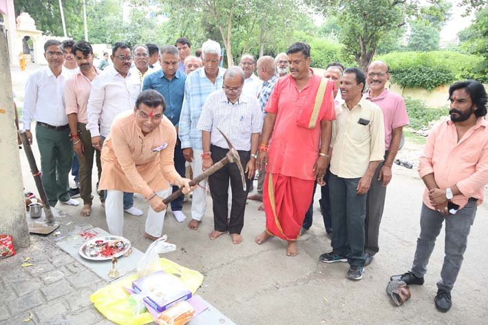उदयपुर 22 जुलाई / वार्ड 46 में गंगा के चौथे पाये गंगु कुंड परिसर मे 26 लाख रूपये की लागत से लगने वाली इन्टरलॉकिंग टाईल्स निर्माण कार्य का शुभारंभ सोमवार को निर्माण समिति के अध्यक्ष आशीष कोठारी, वार्ड पार्षद एवं गैराज समिति के अध्यक्ष मनोहर चौधरी, पूर्व बार अध्यक्ष रामकृपा शर्मा,  मंडल अध्यक्ष जितेन्द्र मारू, महामंत्री महेश भावसार ने पंडित दुर्गेश पालीवाल के द्वारा विधि विधान के साथ शुरू हुआ। यह कार्य दो माह में पूरा हो जायेगा। इस अवसर पर मनोहर चौधरी ने कहा कि पिछले 4 वर्षो में वार्ड में 08 करोड़ रू. से अधिक के कार्य कराये गये है। इस कार्य से गंगु कुंड परिसर में आने वाले भक्तों एवं पर्यटकों को इसका लाभ मिलेगा।