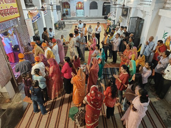 कार्यक्रम के दौरान धन सिंह देवड़ा एवं उनकी मंडली द्वारा रात्रि 8:30 बजे तक भजन संध्या का आयोजन किया गया, जिसमें भक्ति रस से सरोबार गीतों ने भक्तों को मंत्रमुग्ध कर दिया। इसके पश्चात ठाकुर जी की महाआरती संपन्न हुई तथा सभी भक्तों को ढाई सौ किलो खीर की प्रसादी वितरित की गई।