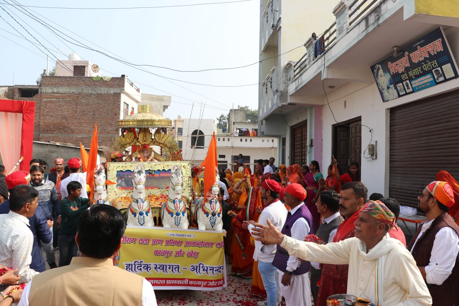 सर्व समाज ने अक्षत कलशो को सुंदर रथ में सजाकर पूरे गांव क्षेत्र में भव्य शोभा यात्रा निकाली गई यह शोभा यात्रा कानपुर से होती हुई खेड़ा होते हुए पुनः कानपुर पहुंची।