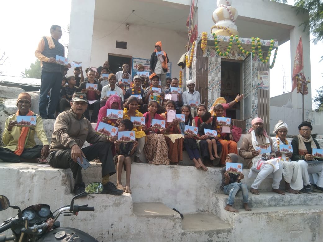 घर-घर संपर्क में आयोध्याजी से आये अक्षत, राम मंदिर जानकारी का पत्रक और राम मंदिर का चित्र भेंट किये गए।