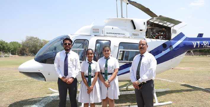उदयपुर। जिस हेलीकोप्टर को अब तक आसमान में निहारते रहते थे उस हेलीकोप्टर को आज अपनी आंखों के सामनें अपने डीपीएस स्कूल की जमीन पर देखा तो हजारों बच्चें बहुत देर तक उसे निहारते रहे। हेलीकोप्टर राईड बच्चों में रोमांच एवं कातूहल बन गयी। बच्चें ने इसे नजदीक से निहारा। विद्यालय की गैलेरी में खड़े हो कर राईड को निहारते हुए हजारों बच्चें रोमांचित हुए।
