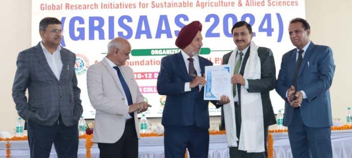 उदयपुर 10 दिसम्बर. आस्था फाउंडेशन, मेरठ द्वारा राजस्थान कृषि अनुसंधान संस्थान, दुर्गापुरा में आयोजित तीन दिवसीय अंतर्राष्ट्रीय संगोष्ठी में कीट विज्ञान अनुसंधान में श्रेष्ठ कार्य सम्पादन हेतु डॉ. अजीत कुमार कर्नाटक, कुलपति महाराणा प्रताप कृषि एवं प्रौद्योगिकी विश्वविद्यालय को आज ”चौधरी हंसा सिंह“ पुरस्कार से सम्मानित किया गया। सतत् कृषि एवं संबंद्ध विज्ञान के लिए वैश्विक अनुसंधान पहल पर आयोजित इस संगोष्ठी में डॉ. कर्नाटक ने ”कल, आज और कल की कृषि“ पर एक विशेष व्याख्यान देते हुए आने वाले समय में पानी की कमी, मृदा क्षरण और फसल उत्पादकता के संबंधों को रेखांकित करते हुए मक्का व मिलेट्स के उत्पादन पर बल दिया। डॉ. कर्नाटक ने जलवायु परिवर्तन के परिप्रेक्ष्य में सटीक व डिजिटल कृषि एवं सतत जल प्रबंधन पर बल देते हुए वैज्ञानिकों व प्रसार कार्यकताओं से नवीन तकनीकों को कृषकों तक शीघ्र पहंुचाने का आवाह्न भी किया। स्मरण रहे कि डॉ. कर्नाटक के नेत्तृत्व में एमपीएयूटी इस दिशा में निरन्तर कार्यरत है तथा नवाचारों के आधार पर यह विश्वविद्यालय वर्ष 2024 में अब तक 25 पेटेंट व डिजाइन पंजीकरण प्राप्त कर चुका है। इस कार्यक्रम के मुख्य अतिथि डॉ. जे.एस. संधु, पूर्व कुलपति, एसकेएनएयू, जोबनेर, डॉ. एस के चतुर्वेदी, निदेशक अनुसंधान, आर एल बी सीएयू, झासी, डॉ. पीके रॉय, निदेशक, आईसीएआर- डीआरएमआर, भरतपुर, डॉ. एसपी सिंह, डॉ. अर्जुन सिंह बालोदा, डॉ. वेद प्रकाश एवं डॉ. अरविंद वर्मा आदि वैज्ञानिक उपस्थित थे।