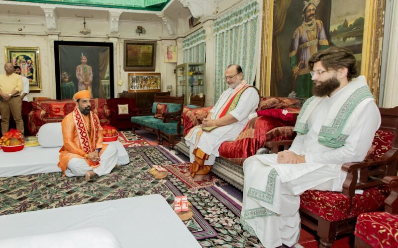 राजसमंद, 23 अक्टूबर। मेवाड़ पूर्व राजपरिवार के सदस्य डॉ. लक्ष्यराज सिंह मेवाड़ दीपावली के पंचदिवसीय महापर्व के पावन अवसर पर कांकरोली स्थित प्रभु श्री द्वारकाधीश और मेदपाट कुलगुरु गोस्वामी डॉ. वागीशकुमारजी महाराजश्री से आशीर्वाद लेने पहुँचे।