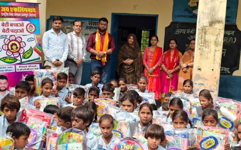 एकलिंग नाथ सेवा संगठन ने स्कूली बच्चों को वितरित किए शैक्षिक किट, दो बच्चियों को गोद लिया