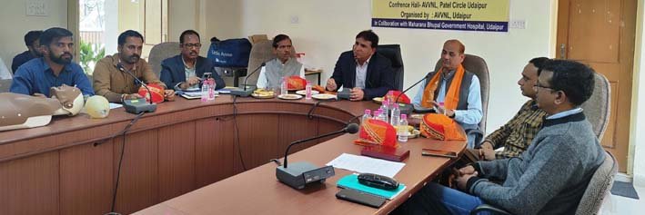 बी.एस.शर्मा अधीक्षण अभियंता ने तकनीकी कर्मचारी को करंट लगने, ऊंचाई से गिरने, हृदयाघात एवं अन्य प्रकार की आपात स्थिति में जान बचाने के लिए विशेषज्ञां द्वारा प्रारंभिक उपचार का प्रशिक्षण प्रदान किया गया। इस कार्याशाला में ट्रेनिंग कोऑर्डिनेटर ललित कुमार गन्धर्व ने फर्स्ट एड से जीवन सुरक्षा के बारे में बताया। एमबी हॉस्पिटल के एनेस्थेसिया विभाग के प्रोफेसर डॉ. रविन्द्र गहलोत ने बेसिक लाइफ सपोर्ट पर व्याख्यान दिया। दोनों विशेषज्ञों ने प्रायोगिक प्रशिक्षण के माध्यम से कई उपयोगी जानकारी दी। एमबी हॉस्पिटल के जगदीश अहीर ने भी विचार रखे। अन्त में प्रतिभागियों को प्रमाण पत्र प्रदान किये गये। वर्कशॉप के आयोजन की व्यवस्था राकेश सोनी, अधिशासी अभियंता (ट्रेनिंग) उदयपुर ने की।