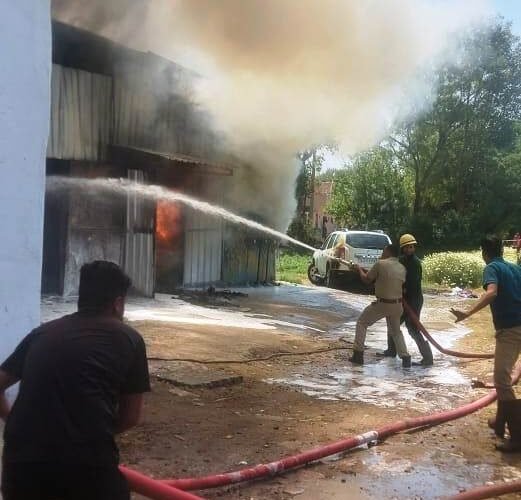 कूलर के गोदाम लगी आग मौके पर पहुंची फायर कंट्रोल टीम आग पर पाया काबू