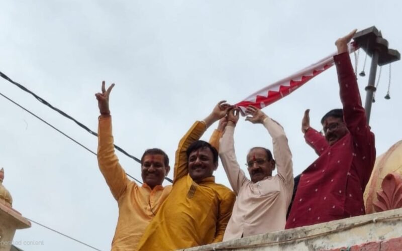 वैदिक मंत्रोच्चारण के साथ हुआ हवन, मंदिर के शिखर पर चढ़ाई ध्वजा