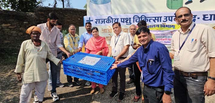 उदयपुर, 22 अक्टूबर। प्रधानमंत्री आदि आदर्श ग्राम योजना के अंतर्गत मंगलवार को धार ग्राम पंचायत में चयनित एवं प्रशिक्षित मुर्गी पालकों को 22 पोल्ट्री पिंजरा तथा 50 किलो मुर्गी आहार का निःशुल्क वितरण किया गया।