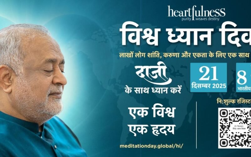 उदयपुर, 18 दिसंबर। विश्व ध्यान दिवस, 21 दिसंबर 2025 के अवसर पर हार्टफुलनेस मूवमेंट द्वारा शांति, सद्भाव और आंतरिक संतुलन के लिए एक ऐतिहासिक वैश्विक लाइव मेडिटेशन सत्र का आयोजन किया जा रहा है। इस विशेष सत्र का नेतृत्व हार्टफुलनेस के वैश्विक मार्गदर्शक पूज्य दाजी कमलेश डी पटेल करेंगे। यह लाइव ध्यान सत्र रात 8 बजे प्रारंभ होगा और ‘एक विश्व, एक हृदय’ (One World, One Heart) के प्रेरक संदेश के साथ पूरी दुनिया को एक सूत्र में पिरोएगा।