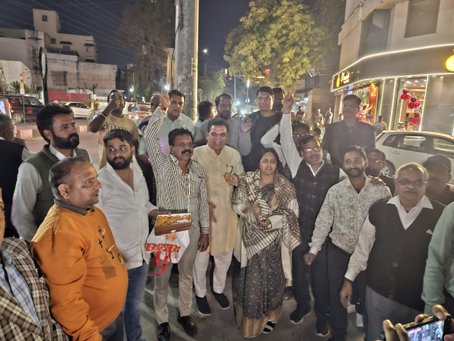 उदयपुर 11 फरवरी / राजस्थान सरकार द्वारा जारी बजट में आयड़ चौकी को थाने में क्रमोनत करने पर भाजपा प्रदेश उपाध्यक्ष डॉ. अलका मंुदडा, पूर्व पार्षद एवं समाजसेवी नाना बया, मनोहर चौधरी, महेश भावसार के सानिध्य मेें आयड़ स्थित विवेकानंद चौराहे पर भव्य आतिशाबाजी कर आमजन को मिठाई खिला मुंह मिठा कराया गया। इस अवसर पर मुख्यमंत्री भजनलाल शर्मा, वित्त मंत्री दिया कुमारी, शहर विधायक ताराचंद जैन का आभार व्यक्त कर नारेबाजी की गई। डॉ. मंुदडा ने कहा कि क्षेत्रवासी पिछले कई वर्षो से आयड में थाने की मांग कर रहे जो पूरी हुई है। इससे अपराध में कमी आयेगी। इस क्षेत्र में तीन थाने लगते है जिससे आमजन काफी परेशान था। इस अवसर भाजपा महामंत्री डॉ. पंकज बोराणा, प्रकाश गड़बडा़, तुषार मेहता, महेंद्र दोषी, राजेश गवारिया, आनंद लाल चितौडा, कपिल शर्मा, रितेश जोशी, प्रकाश नलवाया, पूनम मोर, पुरुषोत्तम पंचोली, मनीष जैन, प्रकाश माली, नवीन, श्याम गोयल, ओम प्रकाश चितौडा, नरेश वैष्णव सहित कार्यकर्ताओं ने एक दूसरे को मिठाई खिला बधाई दी।