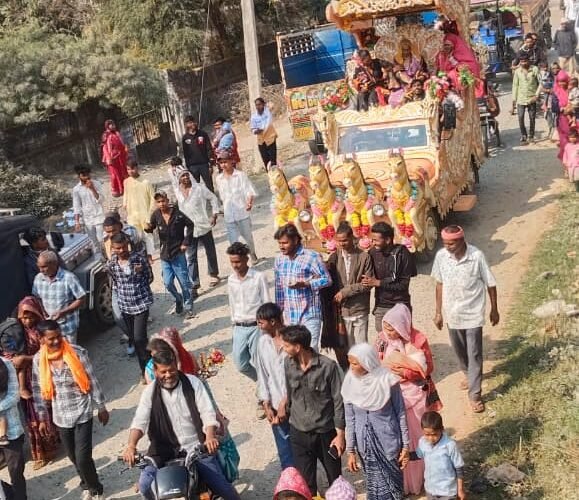 कनबई में माताजी की ऊंट सवारी पर भव्य शोभायात्रा