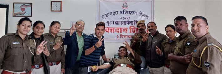 कमाण्डेन्ट प्रणय जसोरिया के निर्देशन में आयोजित इस रक्तदान शिविर में केन्द्र के प्लाटून कमाण्डर मंगला राम, स्वयंसेवक नरेन्द्र, मनीष,  महेश, ओमप्रकाश, रामसिंह, प्रवीण, मुकेश, सवाराम, संजय सिंह, सुश्री धापु व अन्य जवानो ने रक्तदान किया। गृह रक्षा स्थापना दिवस का मुख्य समारोह शुक्रवार को गृह रक्षा प्रशिक्षण केंद्र में आयोजित होगा।