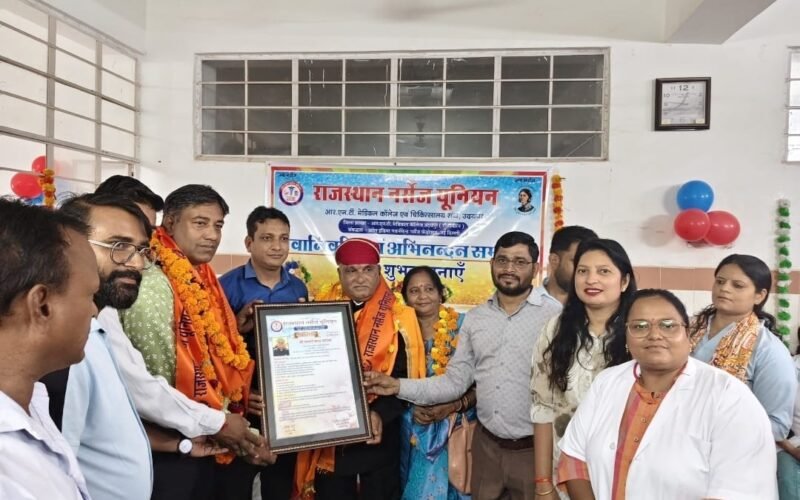 इस अवसर पर राजस्थान नर्सेज़ यूनियन के *सचिव गुलाम नबी सरंक्षक हंसराज मीणा व कार्यकारी अध्यक्ष भोमसिंह मीणा * द्वारा प्रतिक चिन्ह ओर प्रसंसा पत्र देकर् सम्मनित किया । साथ हि यूनियन के सरंक्षक हँसराज मीणा ने उपरना ओड़ा कर उज्जवल भविष्य की कामना की साथ हि यूनियन के सभी सदस्य् उपस्तित रहे ओर मंच संचालन यूनियन के जितेंद्र सालवी एव शर्मिला माली द्वारा किया गया।