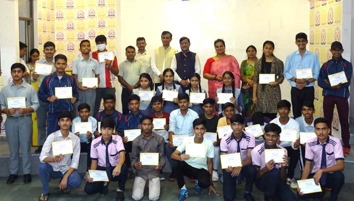 रक्षा जैन ने खेलों का महत्व बताते हुए खेलों के शारीरिक स्वास्थ्य, मानसिक तंदुरुस्ती और टीम वर्क के लाभों के बारें में बताया। समारोह में जिले, राज्य और राष्ट्रीय स्तर पर खेलों में उत्कृष्ट प्रदर्शन करने वाले 120 से अधिक विद्यार्थियों को  प्रमाण पत्र प्रदान कर सम्मानित किया गया। अतिथि डॉ.कुणावत ने विद्यार्थियों को संबोधित करते हुए कहा की खेल केवल एक गतिविधि नहीं बल्कि समर्पण और मेहनत का प्रतीक है। सपने बड़े देखो और उन्हें सच करने के लिए खेलों में अपना सर्वस्व अर्पित करो। मेहनत का कोई विकल्प नहीं होता।