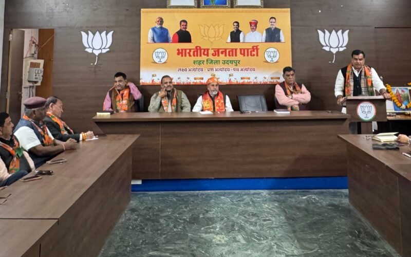 भारतीय जनता पार्टी शहर जिला उदयपुर द्वारा वीबी जीरामजी (विकसित भारत – गारंटी फॉर रोजगार एंड ग्रोथ) अभियान एवं केंद्र सरकार के बजट पर चर्चा हेतु महत्वपूर्ण बैठक भाजपा कार्यालय, पटेल सर्कल पर आयोजित की गई। बैठक की अध्यक्षता जिलाध्यक्ष गजपाल सिंह राठौड़ ने की और मुख्य वक्ता भाजपा प्रदेश उपाध्यक्ष एवं उदयपुर संभाग प्रभारी नाहर सिंह जोधा रहे।