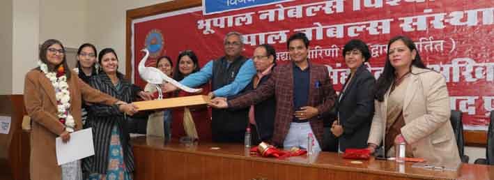 उदयपुर 13 जनवरी।  भूपाल नोबल्स स्नातकोत्तर महाविद्यालय में राव बहादुर ठाकुर राज सिंह बेदला स्मृति अखिल राजस्थान हिंदी वाद विवाद प्रतियोगिता का आयोजन दीप प्रज्वलन के साथ किया गया। राज्य स्तरीय इस आयोजन में मुख्य अतिथि के रूप में संबोधित करते हुए विश्वविद्यालय चेयरपर्सन कर्नल प्रो. शिवसिंह सारंगदेवोत ने उपस्थित सभी प्रतिभागियों से आह्वान किया कि वह निश्चित समय सीमा में संकलित तथ्यों एवं निरंतर हो रहे परिवर्तनों को आत्मसात करते हुए अपनी अभिव्यक्ति को सभी के साथ दृढ़ता पूर्वक साझा करें। वर्तमान में जो परिस्थितियों उत्पन्न हो रही है उसके लिए सभी को तैयार रहना होगा। वही विजेता होगा जो समय की गति को पहचान सके।