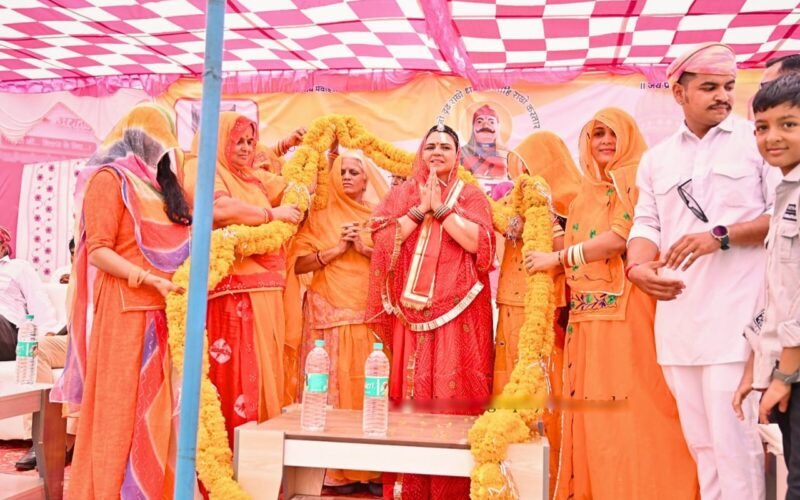 बड़ी सादड़ी के झाला मन्ना चौराहे पर आयोजित धर्मसभा में उपस्थित संत प्रवर का आशीर्वाद लेते हुए सांसद महिमा कुमारी मेवाड़ ने सभा को संबोधित किया।