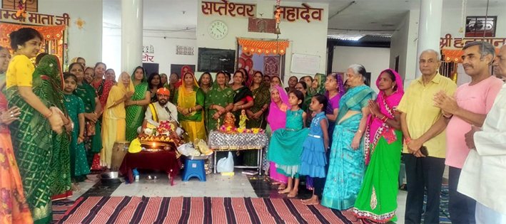 उदयपुर, 4 अगस्त। जगन्नाथ शिव शक्ति मंदिर समिति के तत्वावधान में रविवार को हिरणमगरी सेक्टर-7 स्थित सप्तेश्वर महादेव मंदिर में रविवार को हरियाली अमावस्या पर शिव पुराण कथा के तहत शिव-पार्वती की मेहंदी व हल्दी की रस्म का आयोजन किया गया। महिला समिति की अध्यक्ष किरण सिसोदिया ने बताया कि श्रावण माह में सप्तेश्वर महादेव मंदिर में शिव पुराण कथा का आयोजन किया जा रहा है। इसी कड़ी में रविवार को हरियाली अमावस्या पर शिव-पार्वती की मेहंदी व हल्दी की रस्म का आयोजन किया गया, जिसमें सभी सदस्याओं ने लहरिया पहन कर शंकर भगवान को हल्दी लगाई एवं माता पार्वती जी को मेहंदी लगाई। इस अवसर पर संगीतमय भजनों पर महिलाओं ने सामूहिक नृत्य की प्रस्तुत देकर समां बांध दिया। कार्यक्रम में कान्ता चौबीसा, सुमित्रा वैष्णव, नीमा मसाणिया, गीता मेनारिया, प्रमिला सुथार, कान्ता तोषनीवाल, सीता तोषनीवाल, उमा व्यास, कुशल कंवर, नकुल, गर्वित, विजयलक्ष्मी सहित कई सदस्यों का विशेष सहयोग रहा।