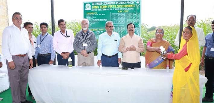 उदयपुर। दीर्घावधि उर्वरक परीक्षण, जो कि विगत 27 वर्षों से भारतीय कृषि अनुसन्धान परिषद् कि वितीय सहायता से महाराणा प्रताप कृषि एवं प्रौद्योगिकी विश्वविद्यालय के राजस्थान कृषि महाविद्यालय में संचालित है, इस परियोजना में लगातार मक्का एवं गेहूँ कि फसल चक्र में पोषक तत्वों के प्रयोग पर परीक्षण चल रहा है तथा इसकी अनुशंसाओं से उदयपुर जिलों के जनजाति क्षेत्रों के किसान कृषि उपज में वृद्धि से लाभान्वित हो रहे हैं। बैठक दल के सभी सदस्य, वैज्ञानिकों एवं कृषकों द्वारा प्रक्षेत्र का अवलोकन कर पोषक तत्वों के प्रभाव को बारीकी से अवलोकन किया। इस परियोजना की पश्चिमी क्षेत्र की तीन दिवसीय समीक्षा बैठक में वैज्ञानिकों के दल ने आज जनजाति कृषकों से सीधे संवाद किया। संवाद के दौरान डॉ पी. के. शर्मा, पूर्व कुलपति, शेरे-ए-कश्मीर कृषि एवं प्रौद्योगिकी विश्वविद्यालय, जम्मू, ने कृषकों से मृदा के नमूनें लेने कि विधि एवं पोषक तत्वों के बारें में पूंछा तो किसानों ने बहुत ही आसन भाषा में उत्तर दिए। जनजाति योजनान्तर्गत प्रथम पंक्ति प्रदर्शन दिए गए थे उनकी प्रगति के बारे में जानकारी ली एवं इस योजना से कृषकों ने हुए लाभ के बारे में विस्तार से चर्चा की। संवाद कार्यक्रम में कृषकों ने वैज्ञानिकों से मक्का एवं गेहूँ की फसलों में लगने वाली बिमारियों एवं कीट प्रबंधन पर कई प्रश्न पूछे जिसका समाधान समीक्षा दल की डॉ. आर. सांथी, डॉ. वी. खर्चे, डॉ. आर. पड़ारिया एवं डॉ. आर. एलान्चेजीयन ने किया। सभी वैज्ञानिकों ने तरल जैव उर्वरक प्रयोगशाला का भी भ्रमण किया एवं संवाद के दौरान प्रयोगशाला उत्पादित तरल जैव उर्वरकों को कृषकों को वितरित कर एवं उनका फसलों में महत्व को विस्तार से समझाया। यह संवाद कार्यक्रम मक्का की फसल प्रक्षेत्र पर ही आयोजीत किया गया, जिसे देखकर कृषक एवं वैज्ञानिक दल के सदस्य अभिभूत हो गए। संवाद के सूत्रधार बनते हुए परियोजना अधिकारी डॉ. सुभाष मीणा ने कार्यक्रम को संचालित करते हुए कृषकों एवं वैज्ञानिकों के बीच संवाद हेतु सेतू का कार्य किया।