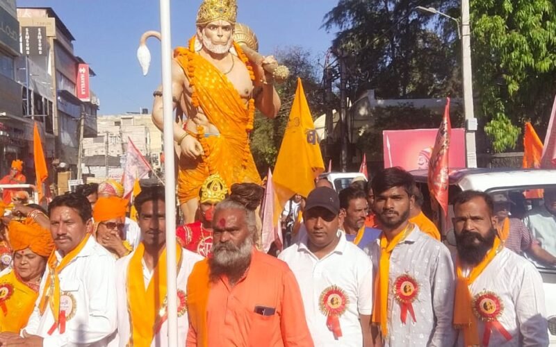 हनुमान जन्मोत्सव की पूर्व संध्या पर धूमधाम से निकली बजरंग सेना मेवाड़ की शोभायात्रा