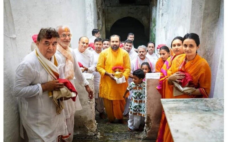पुष्टिमार्गीय प्रधान पीठ प्रभु श्रीनाथजी की हवेली में दि. 21/06/2024,शुक्रवार को होने वाले श्रीजी प्रभु के जेष्ठाभिषेक स्नान के लिए स्नान यात्रा के एक दिन पूर्व गुरुवार को तिलकायत गो.ति 108 श्री राकेश जी (श्री इंद्र दमन जी) महाराज श्री व गो. चि.105 श्री विशाल जी (श्री भूपेश कुमार जी)बावा व गो. चि.105 श्री लाल बावा ने वल्लभ कुल परिवार व श्रीजी एवं लाडले लाल प्रभु के सेवकों सहित “जमुना जल घट भर चली चंद्रावली नार” के भाव से जमुना जल के रूप में श्रीजी प्रभु की हवेली में स्थित भीतर की बावड़ी से श्रीजी प्रभु के जेष्ठभिषेक स्नान का जल भरा!तिलकायत श्री एवं श्री विशाल बावा व लाल बावा ने सांयकाल श्रीजी प्रभु के जेष्ठाभिषेक स्नान के जल का केसर,चंदन,बरास, गुलाब जल,तुलसी पत्र,सुगंधित सामग्री व सुगंधित फूलों से जल का अधिववासन किया! जिससे श्रीजी प्रभु का जेष्ठभिषेक स्नान कराया जाएगा ! स्नान यात्रा के अवसर पर श्रीजी प्रभु सवा लाख आम का भोग अरोगेंगे जिसकी सेवा वैष्णव जन एवं मंदिर सेवकों द्वारा बड़ी जोर-शोर से की जा रही है ज्ञातव्य है कि यह आम के भोग की सेवा निरंतर कई दिनों से महाराष्ट्र एवं गुजरात व देश के विभिन्न क्षेत्रों से वैष्णव जनों द्वारा भेजी जा रही है और सागर में सेवको एवं वैष्णव जनों द्वारा सिद्ध की जा रही है ! इस अवसर पर श्रीजी प्रभु के सेवकों में बड़े मुखिया श्री इंद्रवदन जी गिरनारा,श्री प्रदीप सांचीहर, नवनीत प्रिया जी के सेवकों में मुखिया जी श्री रजनीकांत सांचीहर,घनश्याम सांचीहर, पराग,हर्षद आदि सेवकों ने जल भरा! इस अवसर पर श्रीनाथजी मंदिर के अधिकारी श्री सुधाकर उपाध्याय, मुख्य प्रशासक श्री भारत भूषण व्यास, मंदिर मंडल के सदस्य समीर चौधरी, तिलकायत श्री के मुख्य सलाहकार अंजन शाह,सहायक अधिकारी अनिल सनाढ्य, तिलका श्री के सचिव लीलाधर पुरोहित, मंदिर के मीडिया प्रभारी एवं पीआरओ गिरीश व्यास, राजेश्वर त्रिपाठी, समाधानी उमंग मेहता, जमादार हर्ष सनाढ्य, कैलाश पालीवाल आदि उपस्थित थे !