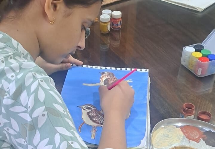 इसी क्रम में विश्व गौरैया दिवस के अवसर पर 12 वर्षीय छात्रा कुनिषा कुमावत ने वाटर कलर के माध्यम से गौरैया के जोड़े का सुंदर चित्र बनाया। यह चित्र उन्होंने ममता जोशी के निर्देशन में तैयार किया।