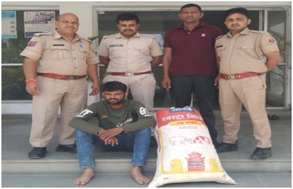 थाना गोगुन्दाः-जिला पुलिस अधीक्षक, उदयपुर श्री योगेश गोयलद्वारा आगामी लोकसभा चुनाव-2024 के मध्यनजर अवैध मादक पदार्थो की धरपकड हेतु चलाये जा रहे अभियान के तहत श्री गोपाल स्वरूप मेवाडा अतिरिक्त पुलिस अधीक्षक, मुख्यालय एवं श्री गजेन्द्र सिंह वृताधिकारी वृत गिर्वा के सुपरविजन में श्री शैतानसिंह थानाधिकारी, गोगुन्दा मय टीम द्वारा दौराने नाकाबन्दी धोलीघाटी एनएच 27 पर एक अॅल्टो कार नम्बर एमएच 02 ऐके 4158 को रूकवाया। जिसमें से एक आदमी गाडी से उतर कर रात का वक्त होने से अंधेंरे का फायदा उठाकर भाग गया एवं कार के चालक गोपाल पिता चन्दु निवासी पीपली, डोडीयान थाना रेलमगरा जिला राजसमन्द को डिटेन कर कार की तलाशी ली गई तो कार में एक सफेद रंग के प्लास्टिक के कट्टे में 09.465 किलोग्राम अवैध गांजा मिला। जिसकी कीमत करीब 05 लाख रूपये है। जिस पर गांजा व कार को जब्त किया जाकर अभियुक्त को गिरफ्तार किया गया व धारा 8/20 एनडीपीएस एक्ट में प्रकरण दर्ज कर अग्रिम अनुसंधान जारी है।
