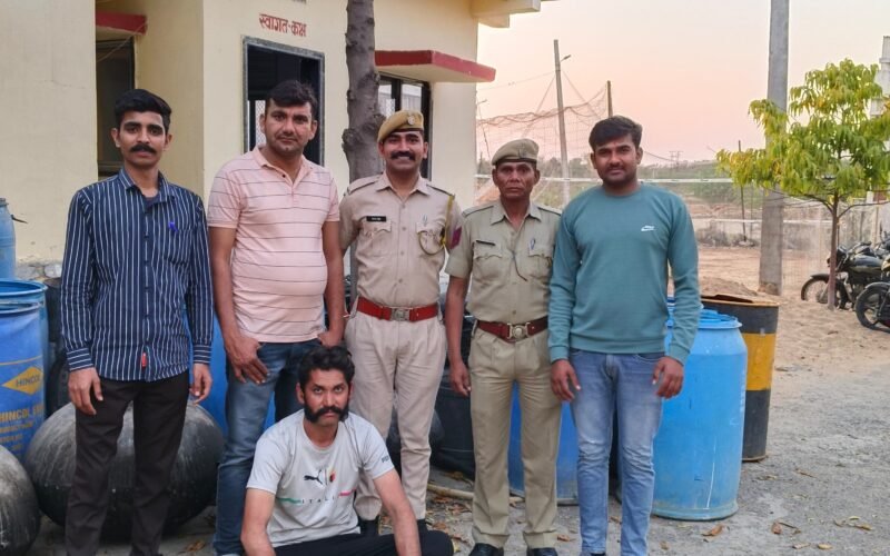 फतहनगर। पुलिस के उच्चाधिकारियों के निर्देशानुसार चलाये जा रहे चुनाव आंचार संहिता की पालना हेतु एवं अवैध शराब मादक पदार्थ व हथियारो की धरपकड अभियान के लिए थानाधिकारी डी.पी.दाधिच जाप्ते सहित गश्त करते हुए सनवाड चोराहा पहुंचा जहां जरिये मुखबिर इत्तला दी कि ग्राम देव जी का खेडा के मनोहर सिह पिता भंवर सिह के खेत मे एकांन्त मे जहां पेडो का झुरमुट होकर एक छपरा बना हुआ है उसके पास मनोहर सिह ने अवैध हथकड शराब बनाने की भटटी लगा रखी है। अवैध हथकड शराब का निर्माण कर आस पास के लोगो को बेचता है। सुचना मुखबिर की पुख्ता होने से थानाधिकारी मय जाप्ते के ग्राम देव जी का खेडा मुखबिर द्वारा बताये गये स्थान पर मनोहर सिह के खेत पर पहुंचा जहां गेहु की फसल के पास एक स्थान जो कि पेडो से आच्छादित होकर छुपाव मे है एक छपरा बना हुआ जो चारो तरफ से खुला है। उक्त व्यक्ति भटटी में आग लगा कर बडे ढकचे नुमा बर्तन को पाईप से जोडकर आगे लगी नली के सामने बर्तन रख कर द्रव पदार्थ इकठा कर रहा है। पुलिस को देख कर भागने की कोशिश की जिसे यथावत बने रहने की हिदायत दी। उक्त व्यक्ति पास ही रखा 3 जरीकनो मे भरे द्रव पदार्थ के बारे मे व उसके कार्य के बारे मे पुछा तो उसने बताया कि मैं महुए व अन्य पदार्थों की सहायता से किण्वन व भटटी से वाष्पन कर हथकड शराब तैयार कर रहा हूं तथा में इस हथकड शराब को 150 रूपये प्रति लीटर बेचता हूं। उक्त व्यक्ति को गिरफतार कर मौके पर 50 लीटर शराब जप्त की। वाष्पन के लिए काम मे लिऐ जा रहे ढकचे व पाईप को जप्त किया गया व शराब बनाने वाली 3 भटियों को नष्ट किया एवं करीबन 10 प्लास्टीक ड्रम में भरा हुआ 3 हजार लीटर वाश नष्ट किया गया। उक्त नष्ट किया हुआ वाश कच्चा माल में मरे हुए चुहें तथा जुतें चप्पल व काफी गन्दगी निकली। बाद पुछताछ व नष्ट भटिया एवं वाश के मनोहर सिहं को गिरफतार किया गया। जिसमें अनुसंधान जारी है।