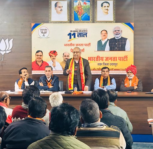 बैठक में उदयपुर शहर जिला अध्यक्ष गजपाल सिंह राठौड़ तथा उदयपुर ग्रामीण विधानसभा विधायक फूल सिंह मीणा ने कार्यकर्ताओं को संगठन सशक्तिकरण अभियान के तहत केंद्र व राजस्थान सरकार की जन कल्याणकारी उपलब्धियों को आमजन तक पहुँचाने का संकल्प दिलाया सहर विधायक ताराचंद जैन ने आगामी बजट के लिए सुझाव माँगे