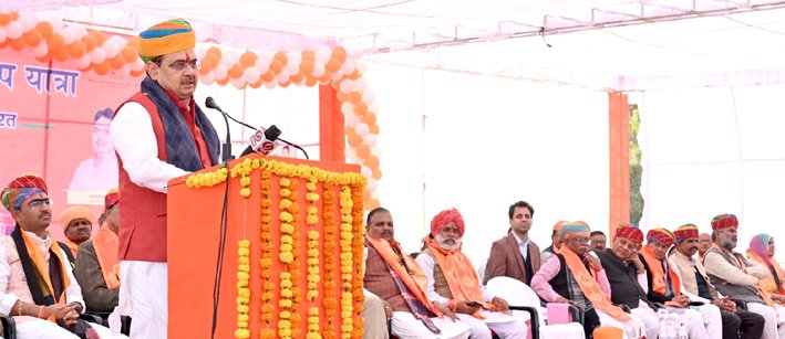 उदयपुर, 9 जनवरी। मुख्यमंत्री श्री भजनलाल शर्मा ने कहा कि विकसित भारत संकल्प यात्रा से भारत में विकास के नए क्षितिज का निर्माण होगा। इस यात्रा के जरिए हम मिलकर विकसित भारत के सबसे बड़े लक्ष्य को हासिल करेंगे। यह सिर्फ सपना ही नहीं, हमारा मजबूत संकल्प है। हमारी सरकार ने प्रदेशवासियों से संकल्प पत्र में जो वादे किए हैं, उन्हें धरातल पर उतारना शुरू कर दिया है। उन्होंने कहा कि इसकी शुरुआत 1 जनवरी 2024 से 450 रुपए में प्रधानमंत्री उज्ज्वला योजना के तहत गैस सिलेंडर उपलब्ध कराने से हो चुकी है। इससे लगभग 73 लाख परिवारों को लाभ मिलेगा।