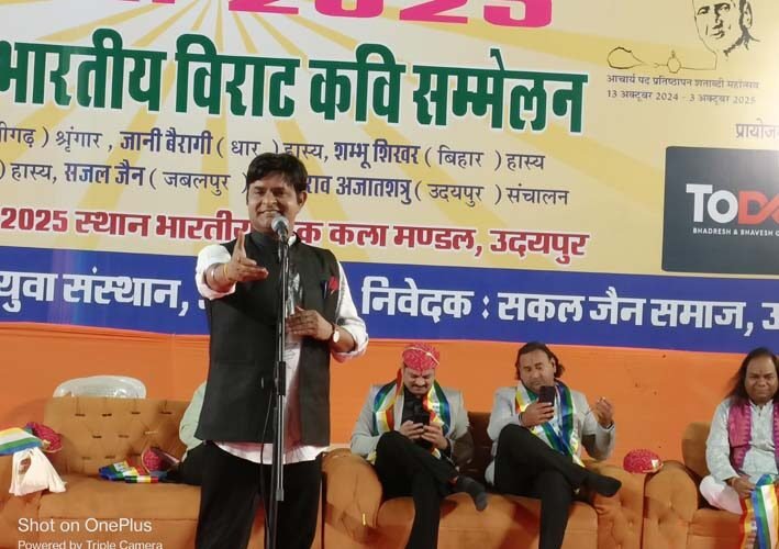 अपनी हास्य रचनाओं से सभी के चेहरे पर मुस्कान लाने वाले कवि श्ंाभू शिखर ने अपनी रचना मनहूस से चेहरों को सदा डाँटता हूँ मैं,ग़म की बदलियों में भी खुशी छाँटता हूँ मैं..,भाता नहीं मुझको कोई चेहरा उदास सा,बस इसलिए ही सबको हँसी बाँटता हूँ मैं….,अपनी अन्य रचना पोशाक पुरानी लिए अभिनव हूँ मनाओ,नफ़रत में भी मैं प्यार का कलरव हूँ मनाओ,रोने के लिए और भी महफ़िल है जहाँ में,शम्भू शिखर मैं हास्य का उत्सव हूँ मनाआंे….,कवि सम्मेलन का सफल संचालन देश के जाने माने और उदयपुर के लाडले कवि अजातशत्रु ने किया।