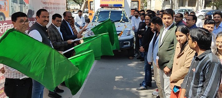राजसमंद 24 फरवरी। जिला कलेक्ट्रेट में शनिवार को भीम विधायक श्री हरि सिंह रावत, जिला प्रमुख श्रीमती रतनी देवी जाट, जिला कलक्टर डॉ भंवरलाल, जिला परिषद सीईओ श्री राहुल जैन, प्रधान श्री अरविंद सिंह, समाजसेवी श्री माधवलाल जाट सहित अन्य अतिथियों ने हरी झंडी दिखाकर चार मोबाइल वेटनरी चिकित्सा इकाइयों को रवाना किया।