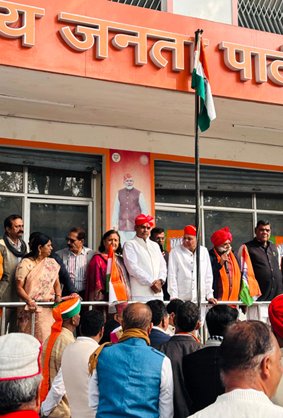 उदयपुर। पटेल सर्कल स्थित भारतीय जनता पार्टी के जिला कार्यालय पर 77वा गणतंत्र दिवस का आयोजन हुआ जिसमें ध्वजारोहन जिला अध्यक्ष गजपाल सिंह राठौड़ द्वारा किया गया। ध्वजारोहण कार्यक्रम में राठौड ने अपने उद्बोधन में कहा कि गणतंत्र दिवस केवल एक पर्व नहीं, बल्कि भारतीय संविधान की गरिमा, लोकतंत्र की शक्ति और राष्ट्र के प्रति हमारे कर्तव्यों की याद दिलाने वाला दिवस है। उन्होंने कहा कि प्रधानमंत्री नरेंद्र मोदी के नेतृत्व में देश आत्मनिर्भरता, सुशासन और विकसित भारत की दिशा में निरंतर आगे बढ़ रहा है, जिसमें हर कार्यकर्ता की भूमिका महत्वपूर्ण है।
