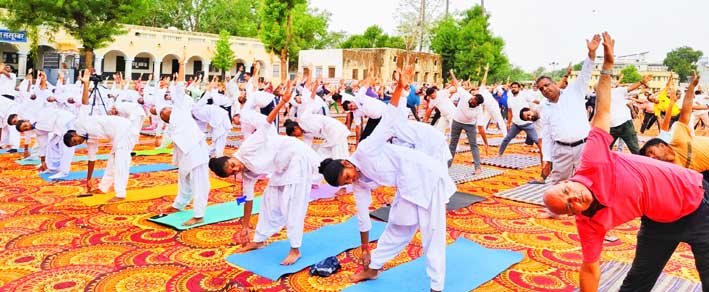 सलूंबर 21 जून । जिले में अंतर्राष्ट्रीय योग दिवस के उपलक्ष्य में  राजकीय उच्च माध्यमिक विद्यालय सलूंबर में भव्य जिला स्तरीय कार्यक्रम का आयोजन किया गया। कार्यक्रम में मुख्य अतिथि जिला कलक्टर जसमीत सिंह संधू ने कार्यक्रम में हिस्सा लेने वाले सभी लोगों के साथ योग के विभिन्न आसनों का अभ्यास किया।