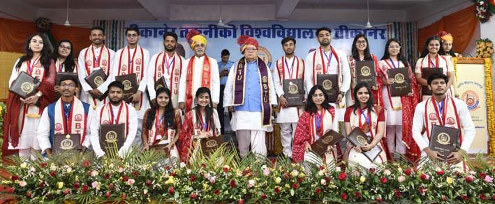 समारोह के दौरान राज्यपाल एवं कुलाधिपति श्री कलराज मिश्र ने बीकानेर तकनीकी विश्वविद्यालय के द्वितीय दीक्षांत समारोह में वर्ष 2024 बीआर्क, बी डिजाइन, बीटेक, एमटेक, एमबीए, एमसीए पाठयक्रम सहित कुल 20 स्वर्ण पदक प्रदान किए गए। वहीं बीटेक की 2 हजार 529, बीटेक (ऑनर्स) की 18, एमबीए की 426, एमसीए की 139, एमटेक की 42, बीआर्क की 3, बी-डिजाइन की 14 सहित कुल 3 हजार 171 डिग्रियां वितरित की। इससे पहले उन्होंने मां सरस्वती की प्रतिमा के समक्ष दीप प्रज्वलित किया। संविधान की प्रस्तावना और मूल कर्तव्यों का वाचन करवाया।