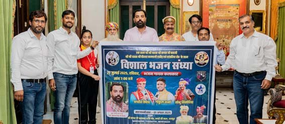 उदयपुर, 16 जुलाई। एक शाम सगसजी बावजी, श्रीवीरवर कल्लाजी राठौड़ एवं सांवरिया सेठ के नाम विशाल भजन संध्या 27 जुलाई को शाम 7 बजे से श्री सगसजी कल्याण शक्तिपीठ मंडी की नाल में होगी। इस विशाल भजन संध्या के पोस्टर का विमोचन बुधवार को मेवाड़ पूर्व राजपरिवार के श्रीजी हुजूर डॉ. लक्ष्यराज सिंह मेवाड़ के करकमलों से सिटी पैलेस में किया गया।